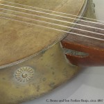They made many models of guitars and banjos. An archived example of his illustrated catalogue circa 1890 shows a fretless banjo: the No. C featuring brass 8″ diameter rim, only 4 brass Shield brackets, Sheepskin head at an incredible price of $1.90 !