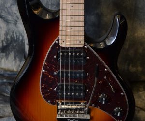MORE →When I think of the term super strat, this is the guitar that comes to mind. When I think of my days of youth cutting my neo-classical teeth on a beat up Fender Japan Strat modded to the nines, I really could have used the 24 frets that comes stock on this model. The Silhouette has been a longtime go-to guitar for players like Keith Richards, Ron Wood, Albert Lee, Steve Morse, Chris Poland and many more. This is the one that really got the company in the favor of all the pros, famous and infamous alike. The neck is very much like a shaved down modern “C” shaped profile with medium fret wire. The radius is super flat and very shred friendly. The real beauty here is that this guitar is available in a dizzying amount of combination’s. The one pictured here is a gem and a pinnacle of versatility. The body is a vividly grained alder with a gorgeous vintage burst and finished with a faux tortoise shell pickguard. The electronics come to us from the amazing people at DiMarzio who lovingly wound some custom pick-ups for this model. They are loosely based on a PAF style tone with a little smackdown on the bottom end. They are super versatile and have enough spunk to go from uber clean to downright nasty. The Musicman vintage modern bridge features some heavy duty saddles that add a ton of chunk to the sound while working with the two pivot point trem to keep everything in tune. The Schaller locking machine heads really help to keep things from going south in the tuning department. The layout is very basic and utilitarian. This very combination echoes the hot-rodded guitars of Steve Vai, Steve Morse, Scott Henderson and Allan Holdsworth yet still keeps a firm grasp of vintage sensibility. I owned a guitar that was very similar to this very model…only mine was tricked out with my draconian touch and flair for Darth Vader-like fashion sense. It was my main go-to guitar for my cover band work and playing this specimen really has me thinking as to why I let my beloved “Darth” go. It now lovingly finds its residence with a good friend of mine in Montreal who claims that the guitar makes him set new land speed records when he’s out gigging with his band. Its funny how this voodoo thing works isn’t it?
