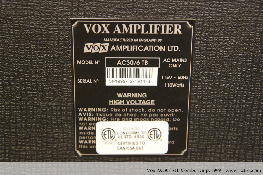 The Vox AC30/6TB Combo Amp was built from 1994 to 2004, just after Vox ownership passed from Rose Morris to Korg.