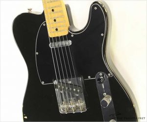 The Fender Telecaster Maple Neck has been built without interruption since 1951, though models dating to 1950 used the name ‘Broadcaster’. The concept is simple yet was revolutionary, immediately appealed to countless guitarists and prompted many advances in musical technology. Here we’re looking at a Fender Telecaster Maple Neck with a black Polyester finish, worn enough through use to have exposed blonde and clear sealer finish undercoats. At the time, if Fender had orders for colours not in stock, they would re-finish a body. For example, this guitar’s body may well have originally been Blonde, and over-sprayed black before assembly and shipment.