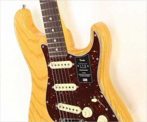 New Fender American Ultra Jazzmaster Maple Neck in seen here in the new Plasma Red Burst finish, with new body contours, stock noiseless pickups, new electronics, biflex truss rod, and a compound radius fingerboard! This versatile, state-of-the-art instrument will inspire you to push your playing to new heights.