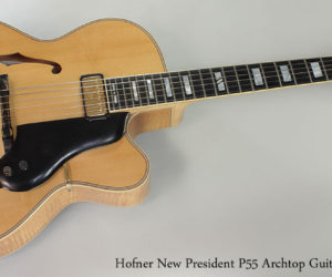 MORE →The Hofner New President P55 is a full 16 inch body archtop guitar with one pickup at the neck. It features a carved German spruce top, African flamed maple for the sides and arched backj, European flamed maple for the neck, with ebony for the fingerboard, headplate, truss rod cover bridge, tailpiece and pickguard.