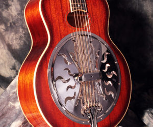 MORE →Beard guitars are normally squareneck, so this is an unusual instrument. This roundneck model is Paul’s newest creation, and it’s got the loudest, fullest bass response from a spider resonator we’ve seen. The custom resonator and oval soundhole really make this a distinctive guitar!