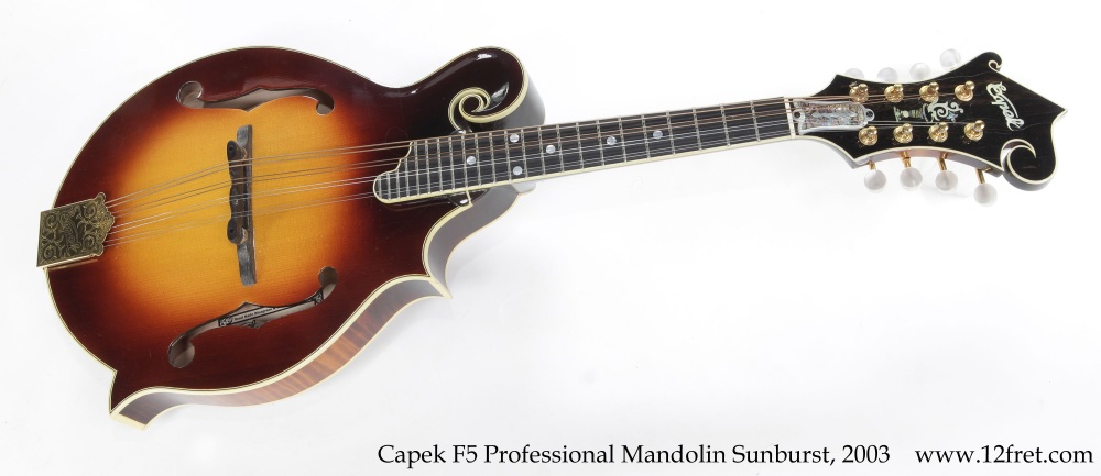 This Capek F5 Professional Mandolin model is impressive. The build quality is very high and the instrument sounds great and plays extremely well. This mandolin is over twenty years old and has some natural lacquer checking and light play wear.