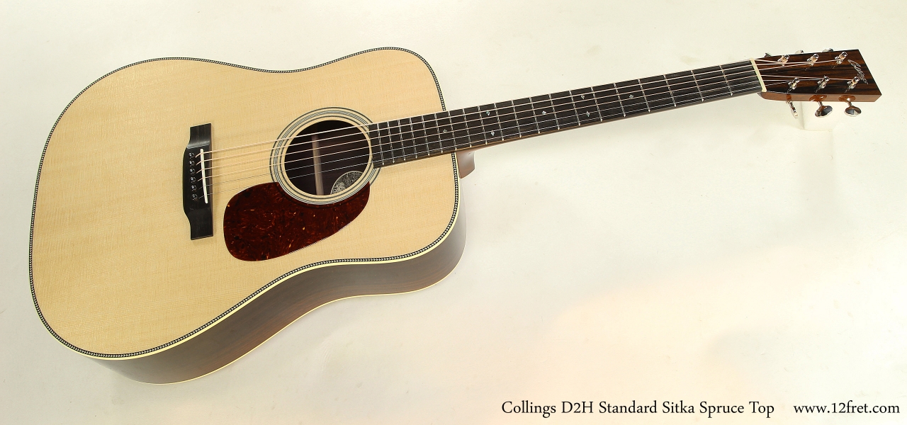 The Collings D2H Spruce and Rosewood Dreadnought has a tonal clarity and immediate note fundamental to go along with the depth and warmth associated with a large body flat top. The classic wood pairing of Sitka spruce and Indian rosewood is perfectly complemented by the herringbone trim and smooth playing neck. If you are looking for an extremely well built, timeless dreadnought with loads of volume and tone then saddle up to the Collings D2H!