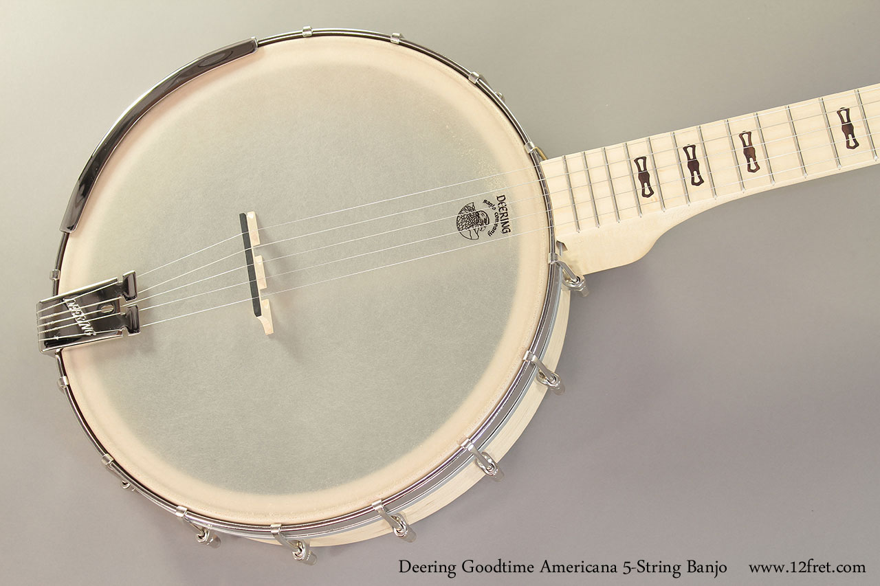 Continuing the long standing Goodtime philosophy of offering the best value American made banjos available, the Americana is the lowest priced 12” model on the market today and retains the distinctive natural blonde Goodtime aesthetics. In keeping with the rest of the Goodtime line, this banjo also features guitar style tuners, a rock maple neck, nickel plated hardware, and hardwood inlays.