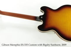 Dating to April 23 2009, this Gibson Memphis ES-335 Custom features beautifully flamed Maple and a factory installed Bigsby B7. I think this is one of the best looking 335’s I’ve seen for some time, and the dual-roller Bigsby is far enough back from the bridge to provide a relatively shallow break angle. This shallow angle really improves the smoothness of both arm movement and return to pitch.