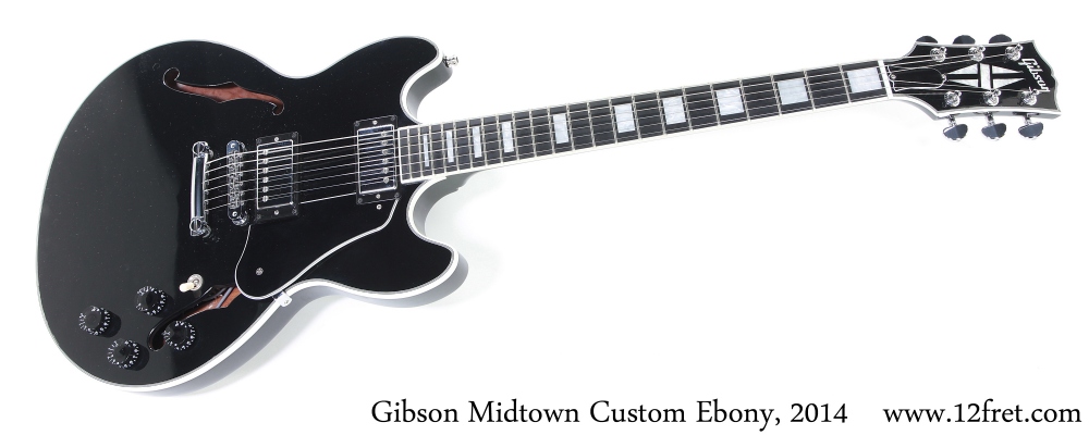 This Gibson Midtown Custom sports the classic gloss ‘Ebony Black’ nitrocellulose lacquer finish and chrome hardware. is in great condition with only very light wear. It plays well, is a comfortable size and weight, and has a full and resonant sound.