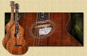 Appointments include: Rope binding top and back, heavily figured Flame Hawaiian Koa woods throughout, Ebony peghead overlay and fretboard. Nitrocellulose lacquer and Sperzel tuners. Construction is feather light. The entire instrument weighs only 2.95 pounds! (A typical Ramirez classical guitar averages about 4 pounds). When played the entire instrument resonates on my lap. Pick it up while the strings are still ringing and everywhere on the body and neck I sense equally strong vibrations through my fingertips. It seems to be giving off sound from every surface!