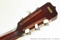 The National Style 1 is an instrument that is very true to these very first National resophonic guitars, right down to the nickel plated German Silver body, T-bridge on spun 6″ National cones, V-profile mahogany neck and slotted peghead! Built in San Luis Opisbo California, the National Style 1 Tricone has a wonderful, massive, deep and rich tone with lots of projection. These models carry a mirror gloss ‘German Silver’ finish (neither German or Silver). The body is steel, with the plated finish, and uses the Tricone T bridge and three 6 inch cones. The 12-fret neck is Mahogany, with a slotted peghead and a National shield decal; the fingerboard is unbound Ebony with Mother of Pearl position markers. Vintage style National tuners are installed.