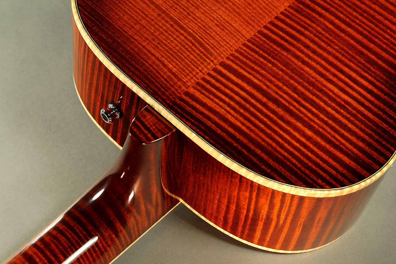 | Neck | Flame maple with maple-bound ebony fingerboard. This is a 12-fret model, providing more bass response. |