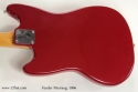 Serial Number128072, dates to 1966.Pricing$1650.00 CAD with original case.NeckMaple neck with unbound rosewood fingerboard, 24″ scale length.Frets22 frets with minor wear.BodyOffset body.FinishOriginal Dakota Red lacquer finish on body, clear on the neck, in very good condition.Hardware/electronicsStock Mustang wiring, with on/off/phase reversal slider switches for each pickup, volume and tone controls. Fender parallelogram ‘F’ stamped tuners with white plastic buttons, original trem arm and cover in case. Pearlescent, multilayer pickguard.Playability/ActionPlays very well, and the shorter scale is a radical difference from Teles and Strats.CaseOriginal grey rectangle case included.