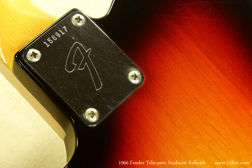 | Comments | The Twelfth Fret opened its doors in 1976 at 920 Kingston Road in Toronto’s east end. From the first, we specialized in repairing and restoring guitars for working musicians. One of the services we offered was custom lacquer refinishing, and the body of this 1966 Sunburst Fender Telecaster was refinished in our shop in the late 1970’s (in fact, it’s very likely that I personally did this finish).