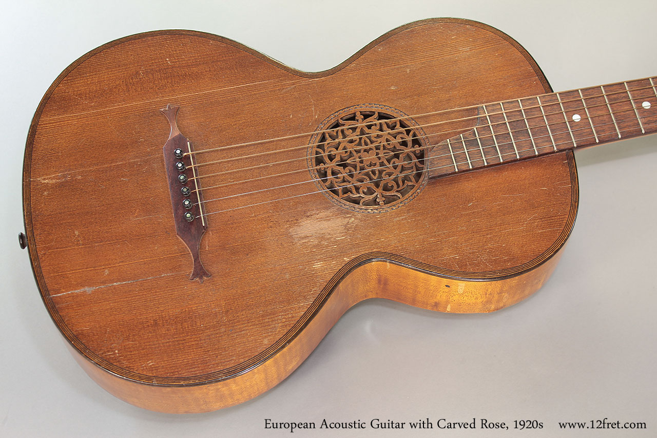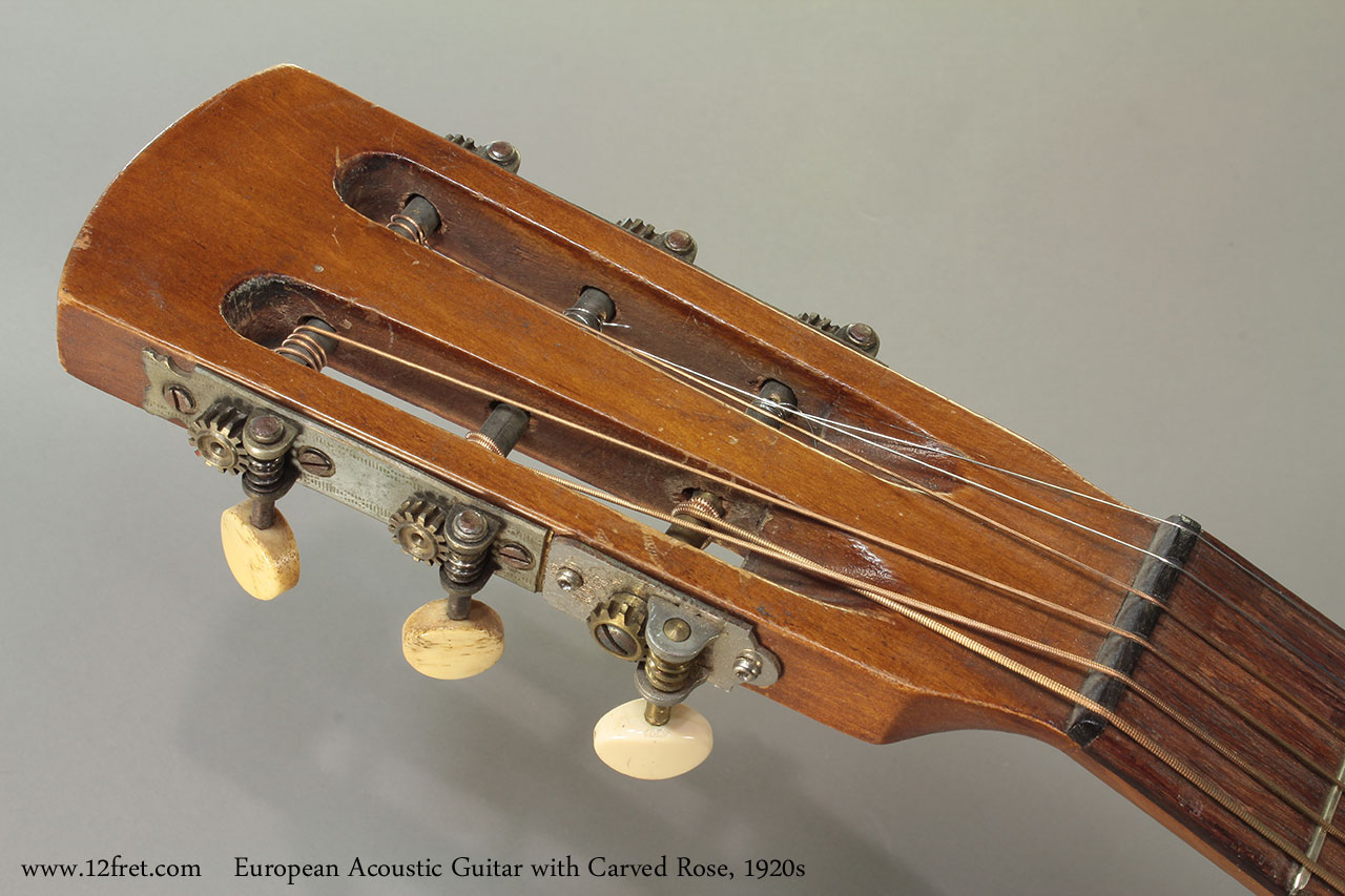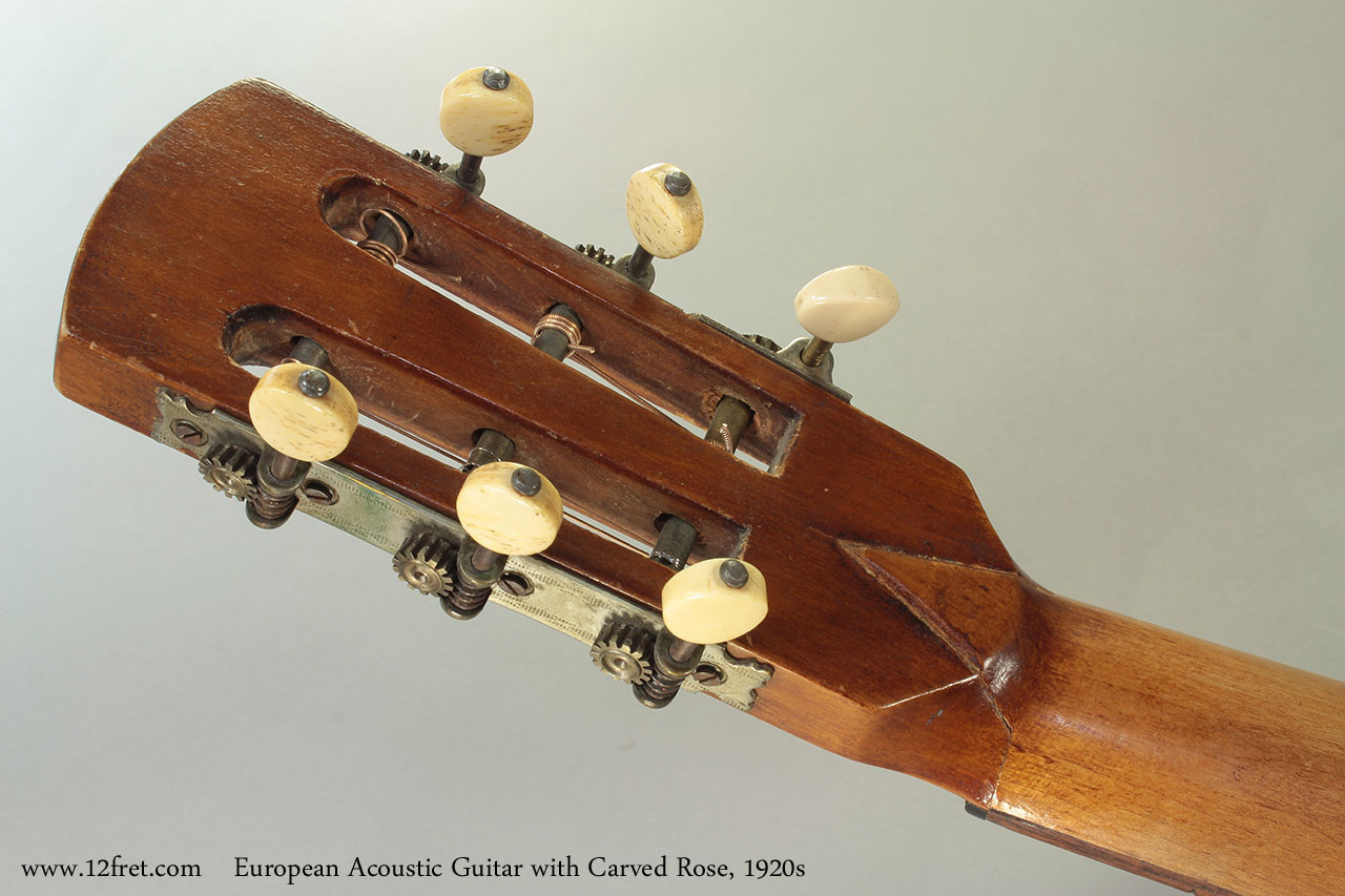 Still a common style in the 1920s, these guitars were built using more modern frets and neck fittings. However, they were styled in the look of the Romantic Era 19th century guitars to appeal to the many players who grew up playing guitars in the mid to late 1800s.