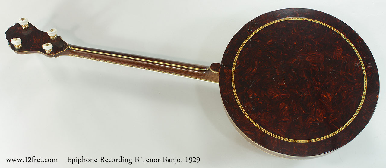 Epiphone Recording Banjos appeared around 1925 and were built until 1935. The Epiphone Recording B, or Bandmaster, was available as a tenor - as seen here - or as a Plectrum model with a longer neck and more frets.