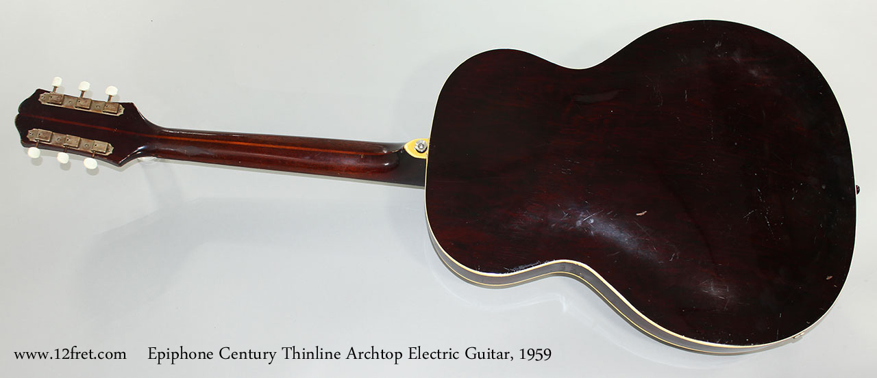 The Epiphone Century thinline archtop electric guitar was a simple beast - a thin body with no cutaway and one pickup. Built from 1939 to 1970, the Century bears some resemblance to the Gibson ES-100 and ES-125 models but the Epiphone Century has a spruce top, with laminated maple back and sides.