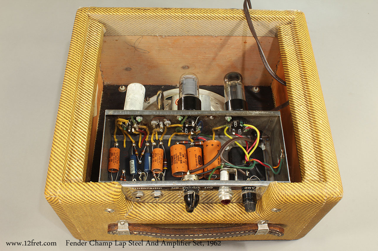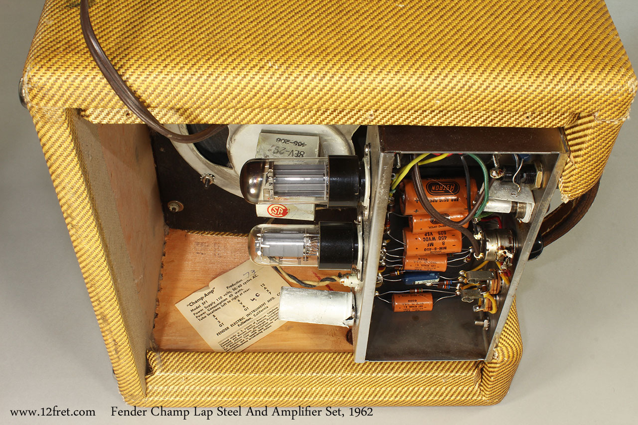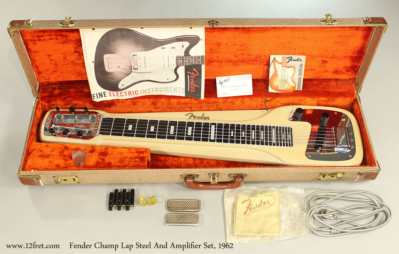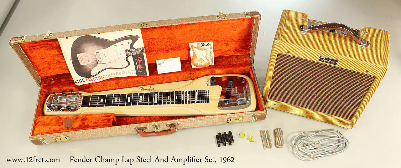 This is very, very cool - from 1962, a Fender Champ Lap Steel and Amplfier set, in excellent condition and with many of the original accessories.