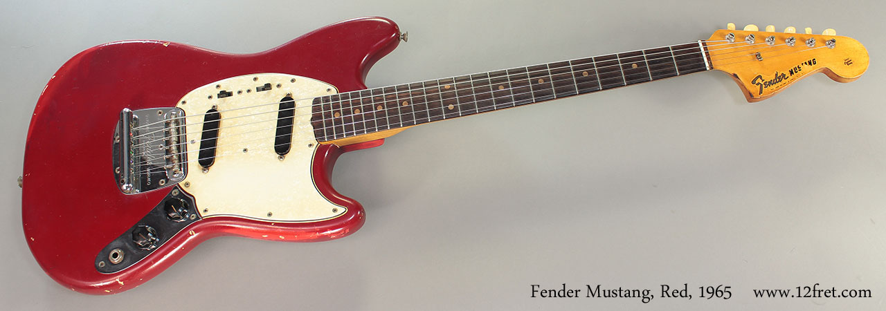 The Fender Mustang first appeared in 1965, as a new student model and was available in two short scale lengths - 24 inches or 22.5 inches. It featured two single coil pickups and slider selector switches along with the single volume and tone controls. As well, a new vibrato system was added with the same style of floating bridge as seen on the Fender Jaguar and Jazzmaster models.