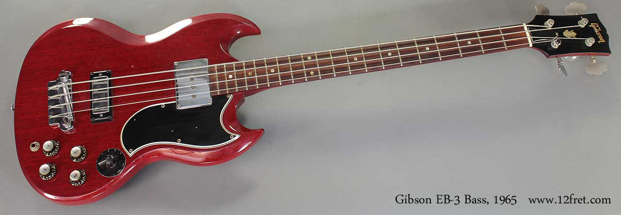 1965 Gibson EB-3 Bass. one tuner changed, mahogany body and neck, rosewood board, newer Gibson hardshell case.