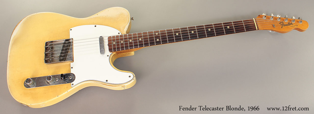 1966 Fender Telecaster Blonde, original finish with some wear and tear. Rosewood fingerboard. New switch tip, double line Kluson tuners. Neck dates to April 1966, tone pot dates to 1965, volume pot replaced. With Gig Bag.