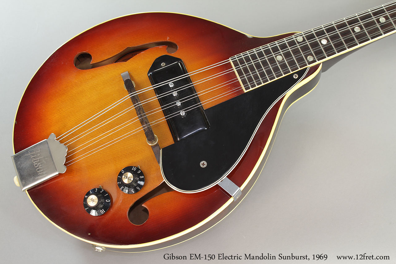 1969 Gibson EM-150 Electric Mandolin in sunburst. P90 pickup, plays very well and all original, original fiber case included.