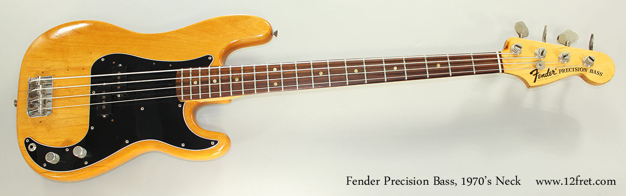 This Precision Bass is built of parts from at least two years. The neck and body have been refinished, so exact dates are gone, but the neck was built during the 1970's, the body is from the mid 1960's, and the L-series neck plate is from 1965. The pickguard and pots are newer. It plays cleanly and well, and is as adjustable as every other P-bass. Sold without case.