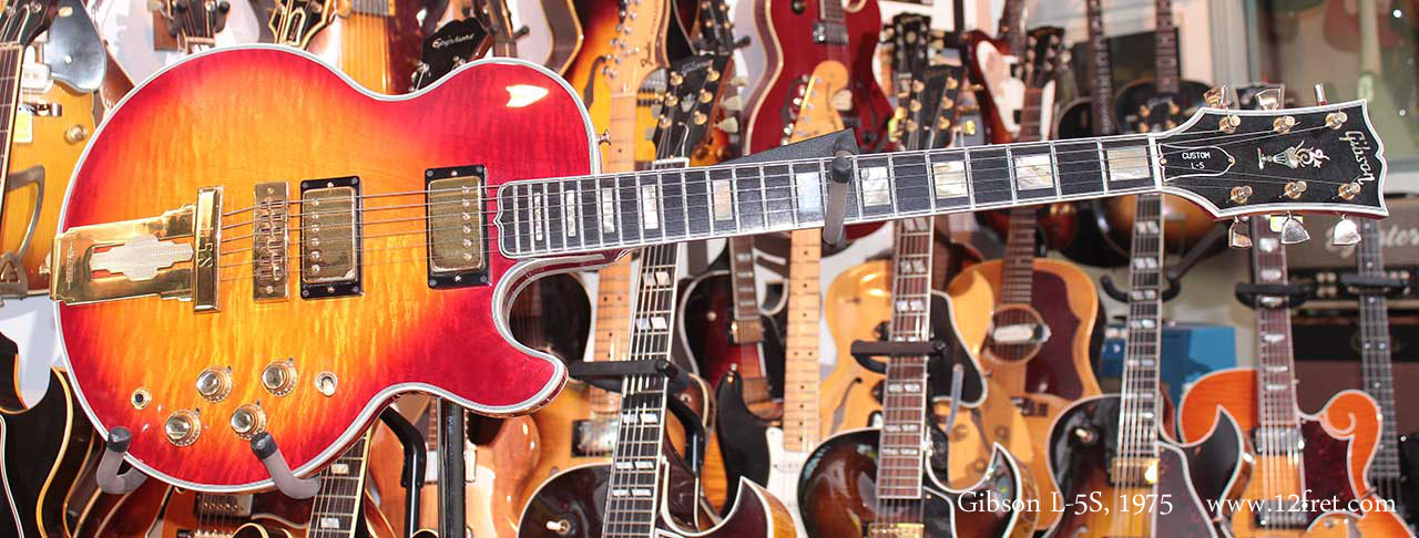 1975 Gibson L5-S in cherryburst, very clean condition. Added removable pickguard that doesn't alter the guitar. Original case with zipper cover.