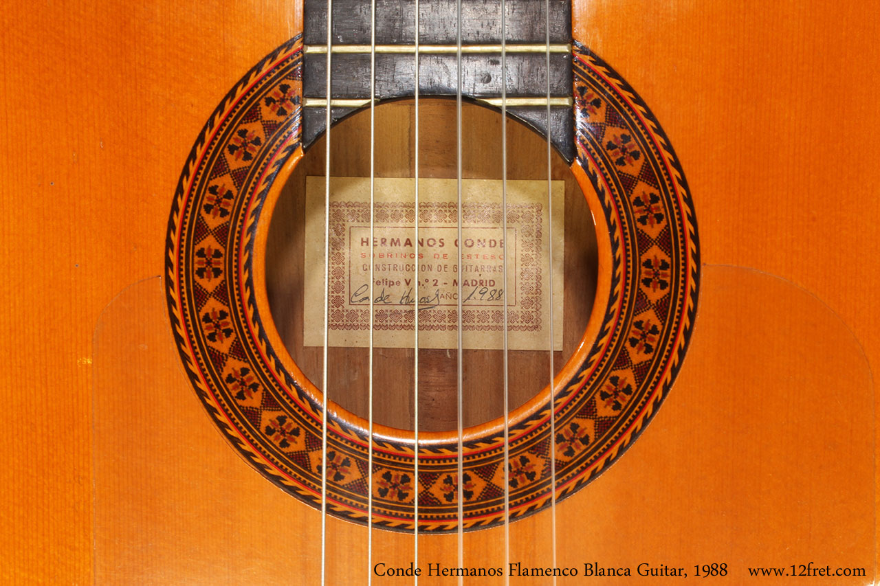 Built by Felipe Conde at the Felipe V No.2 workshop in Madrid, Spain during 1988, this Conde Hermanos flamenco blanca guitar is a wonderful piece.