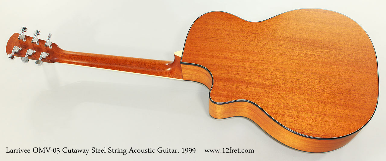 Here's a lovely, well rounded guitar - a Larrivee OMV-03 cutaway steel string built dating from February 10 1999 in Vancouver, British Columbia.