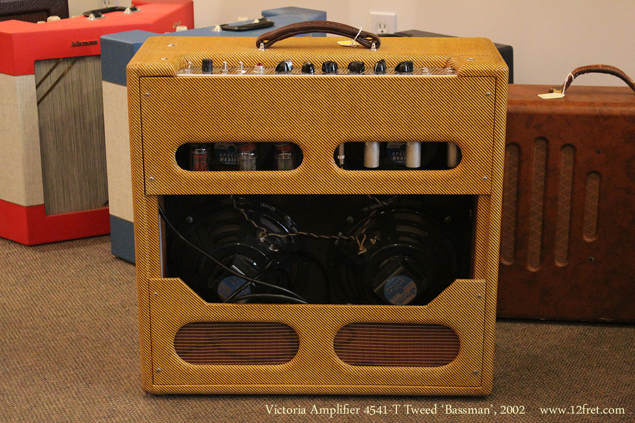The Victoria Amplifier company builds high-quality amps with a view to the tone of fine vintage amplifiers. The Victoria Amplifier 45410 is a reproduction of one the key amps from the 1950's - the tweed Fender Bassman, in its original 4x10 configuration, before the piggyback head / cabinet combination became popular.