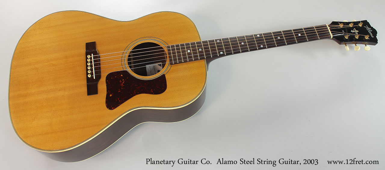 The Planetary Guitar Co. Alamo is a well-built, good sounding steel string guitar, somewhat based on a round-shouldered dreadnought design like a Gibson 45. It does have the warm, rich tone characteristic of the J-45 that goes so well with the human voice. It plays well and cleanly.