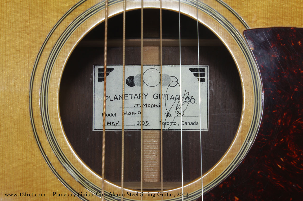 There have been a lot of independent builders and smaller, short lived musical instrument companies. Some are able to maintain a presence for many years, but for a host of reasons, many can not and are mostly lost to the mists of time. Or, in this case, of Toronto. Sadly, here we cannot say that we remember the Alamo, the Planetary Guitar Co. or the person who signed the label, J. McNeil.