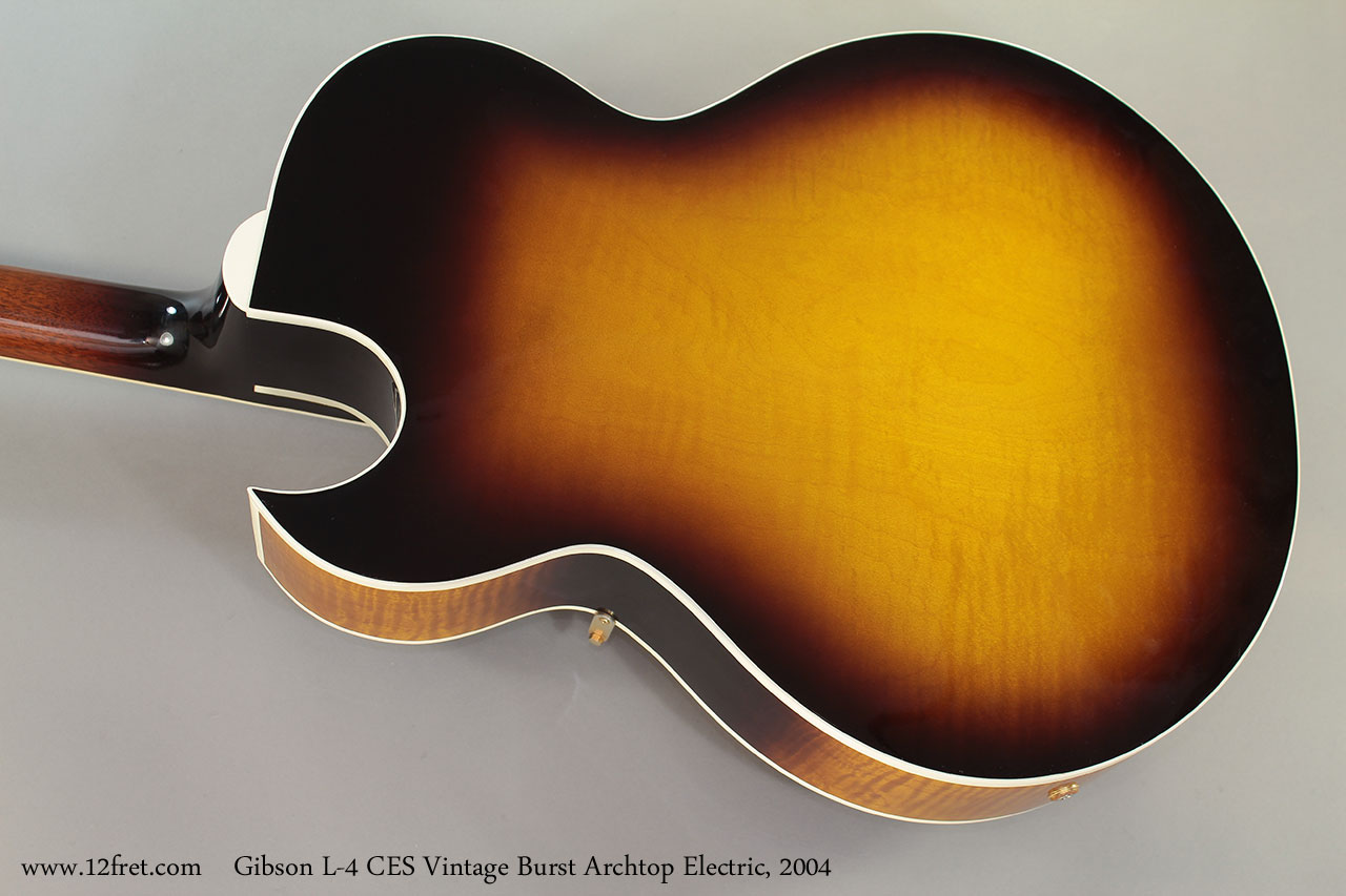 While this guitar's body uses maple laminate for the back and sides, the Gibson L-4 CES is now built using mahogany for those parts.