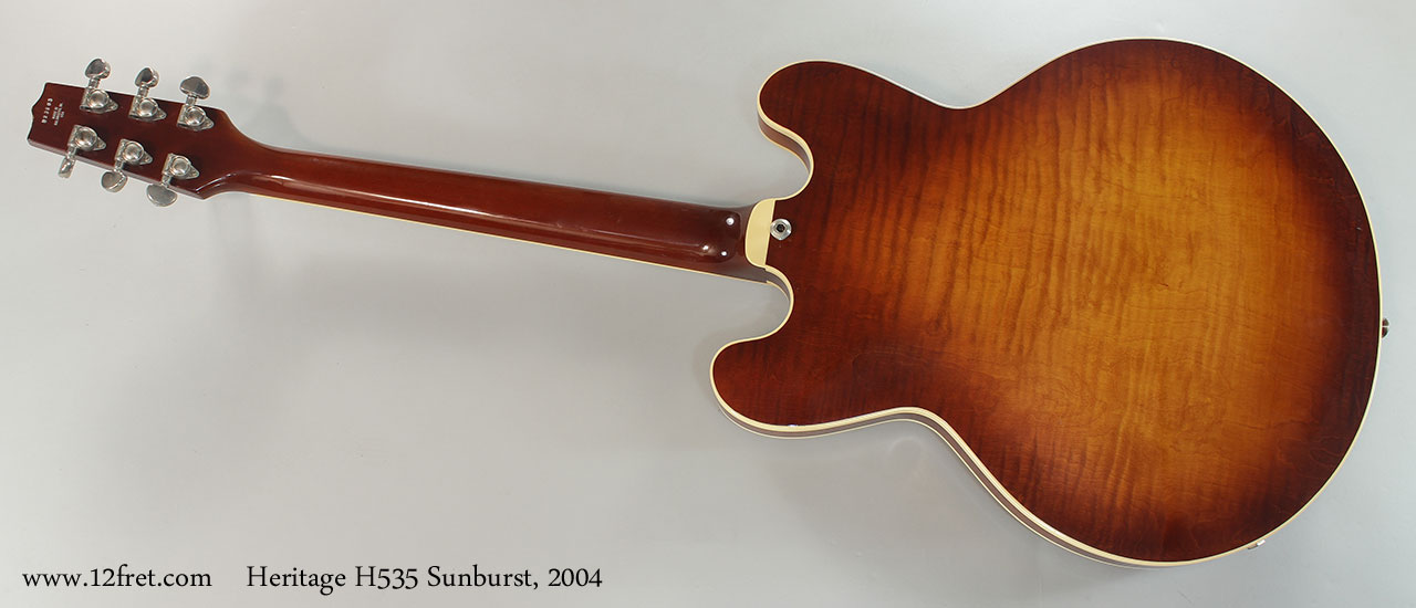 This example of the Heritage H535 was built in 2004 and is in very good condition. It has light play wear on the frets and metal parts, and light finish wear - less that what would be expected for a 12-year old instrument. The original Schaller pickups have been replaced with Lollar Imperial low-wind models.