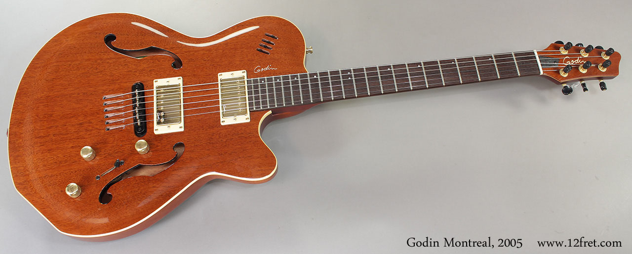 The Godin Montreal is a semi-hollow guitar intended primarily for Jazz and blues, and is inspired by the annual Montreal Jazz Festival, built using a chambered, carved-top mahogany body and solid mahogany neck, with a rosewood fingerboard.