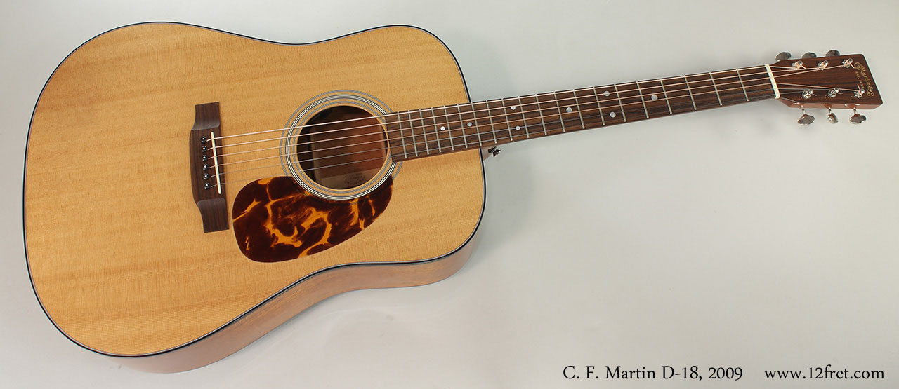 The C. F. Martin D-18 is one of the benchmark guitars - used heavily by singer-songwriters and bluegrass players. The Mahogany and Spruce combination on the D-18 makes for a crisply clean, articulated tone that fits well with banjos, mandolins and voices.