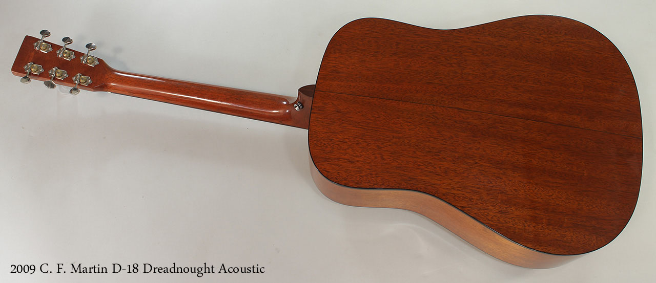 Built in 2009, this Martin D-18 is in excellent condition. The nitrocellulose lacquer finish has natural sinking and very light wear. The Grover open tuners are smooth and precise and the tone is clear, sweet and full.