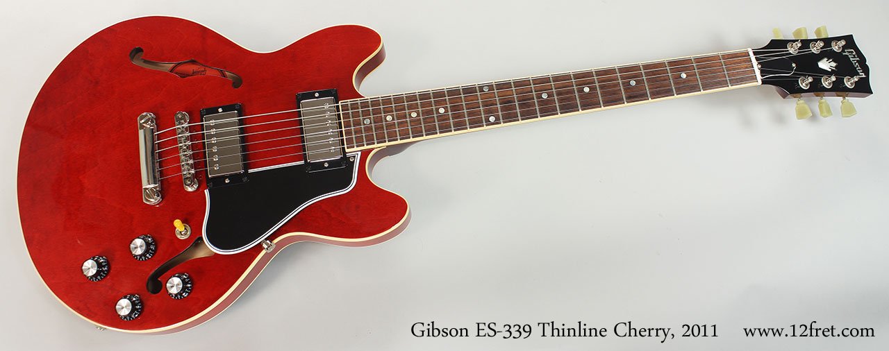 These guitars are built at the Gibson Memphis Custom Shop, and are very popular with working musicians who want a more compact instrument. The ES-339 also features the 'Memphis Tone Circuit', which adds a .001uF capacitor and a low-value resistor (150-300k ohms) between the input and middle lugs of the volume pot. This circuit helps retain treble when turning down the volume control.