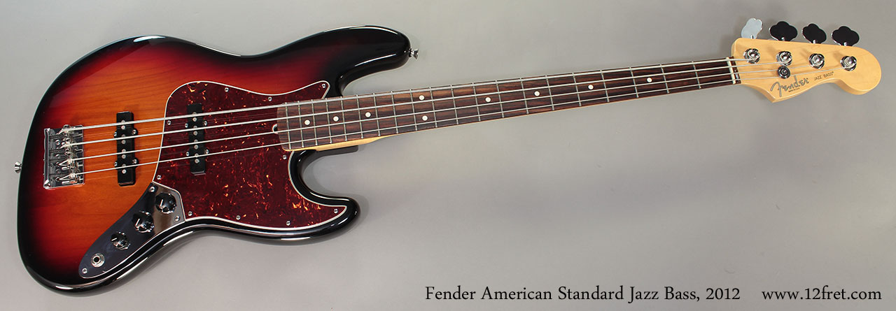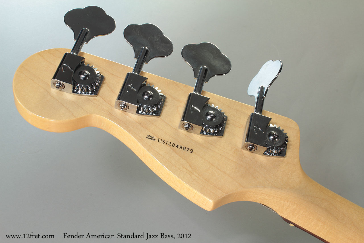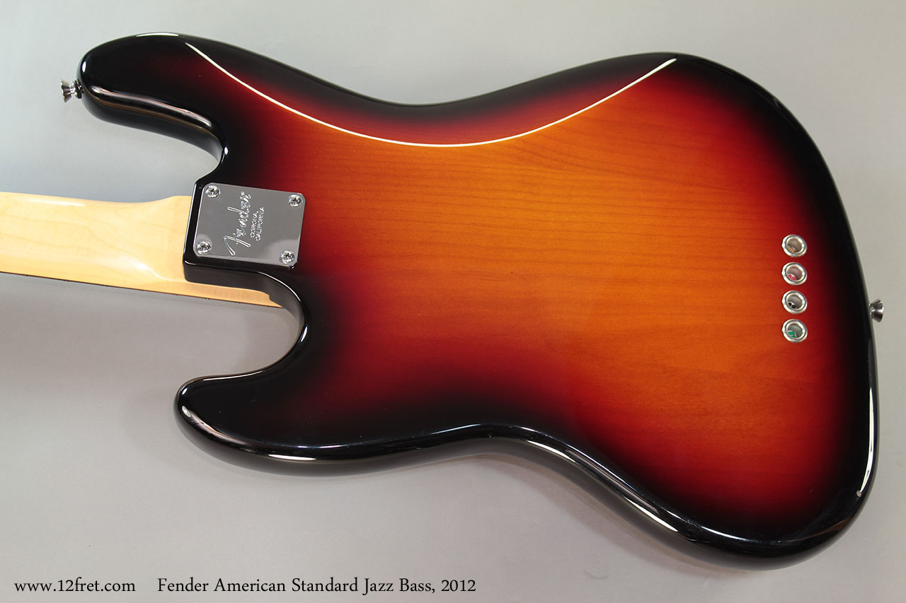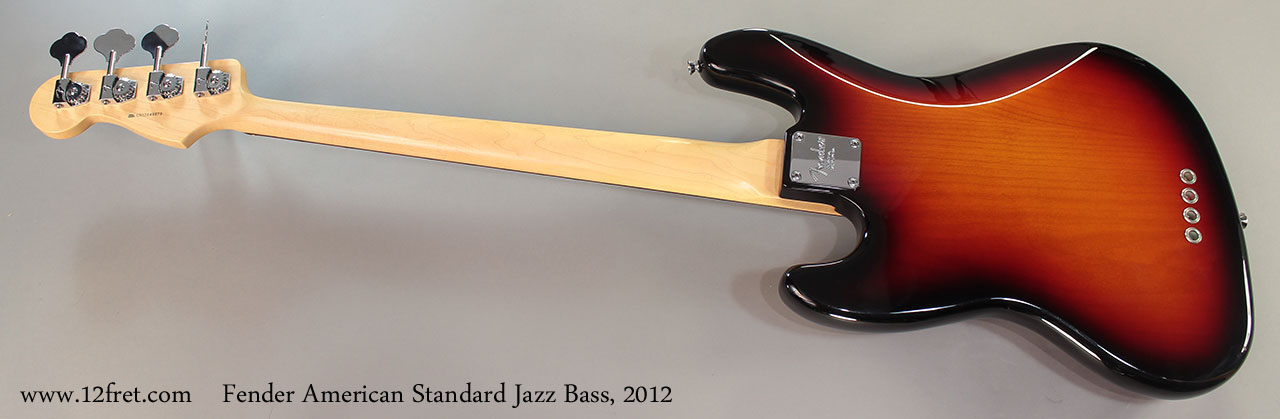 This 2012 Fender American St andard Jazz Bass is in excellent condition and comes with the original Fender rectangular creme tolex case. It has just a couple of very small pressure marks around the edges. There are no significant dents or scratches and almost no fret wear.