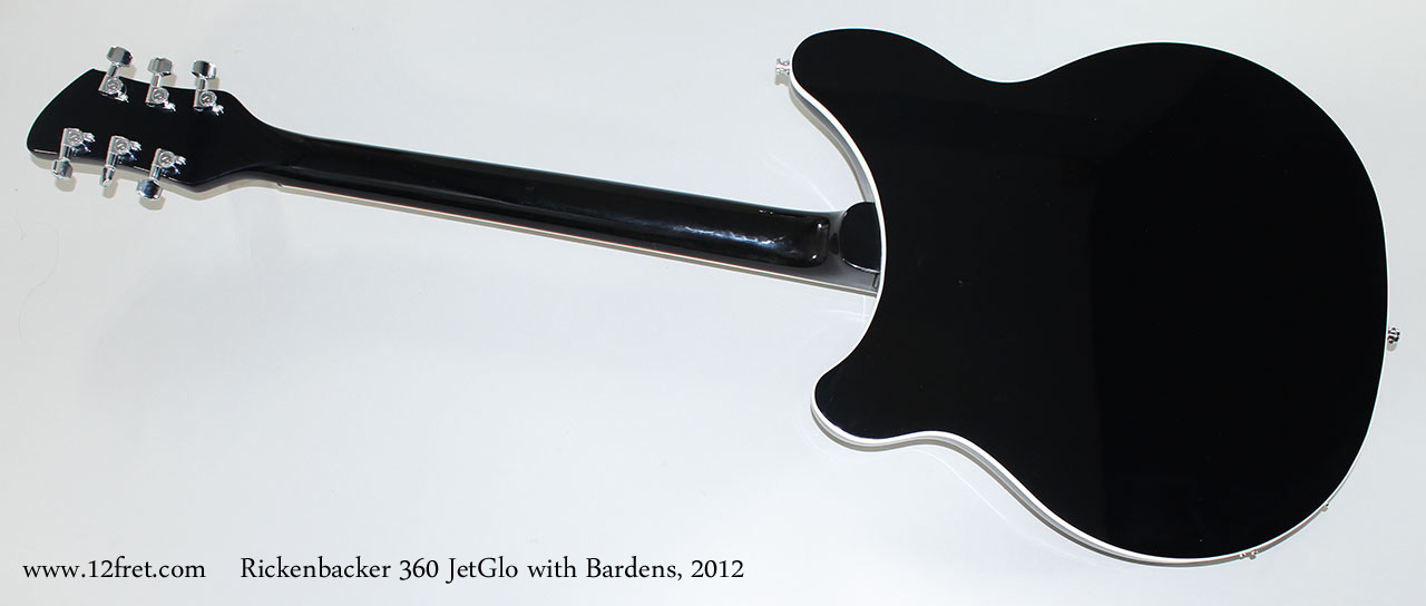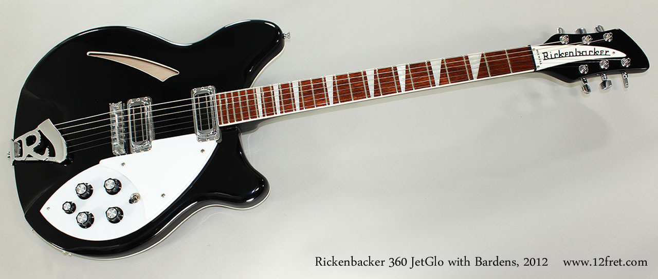 This particular guitar, built in 2012 and in excellent condition, comes with a pair of Joe Barden R300 humbucking pickups, designed to capture as much of the Rickenbacker jangle as possible from a humbucker. The original High Output pickups are in the case though the metal covers are mounted on the guitar (the covers are part of the Rickenbacker design). These pickups are definitely quiet, the twin blades visually suggest the vintage 'toaster top' look, and they do tonally suggest the chime and jangle of a Rick. The original rectangular molded Ric case is included.