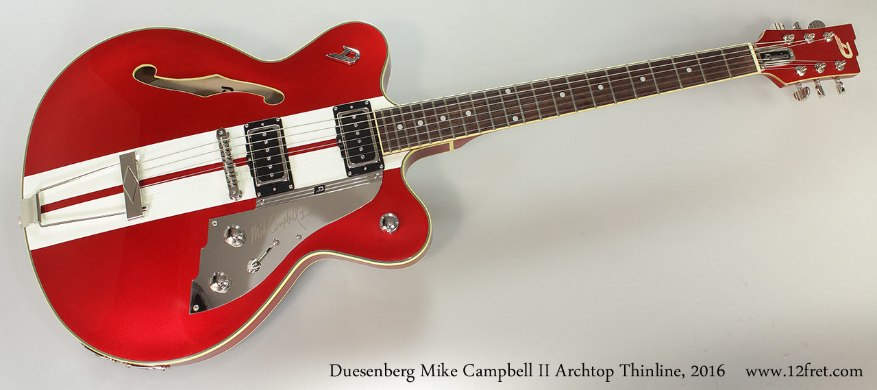 The new MCII - the Duesenberg Mike Campbell II - hollow body features a pair of Duesenberg Domino P-90 pickups and has a 'Destruct Knob' which has the ability to increase the tone by 10db, control the distortion and feedback at anytime with the touch of a fingertip. So make some room in the garage for the big brother of the Mike Campbell series.