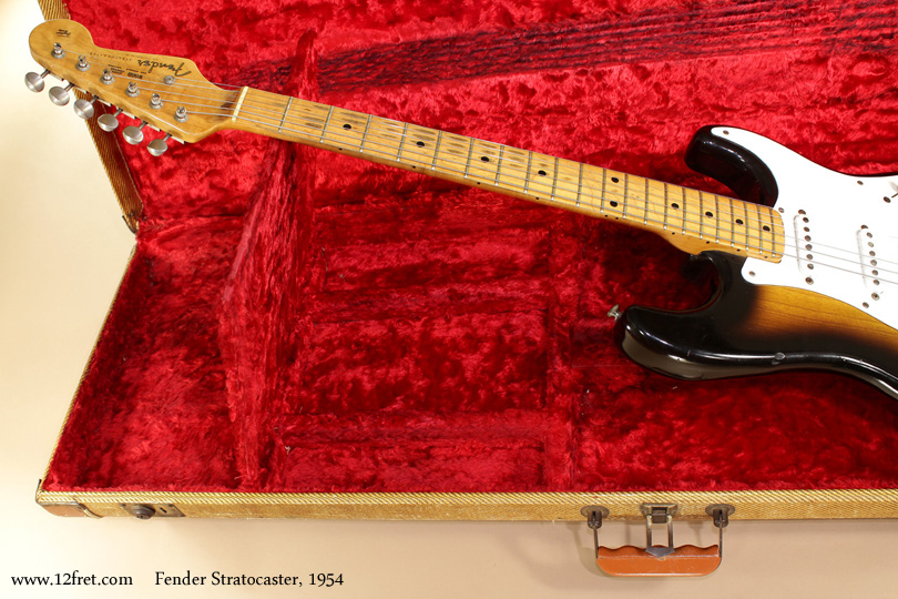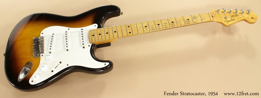 | Comments | This 1954 Fender Stratocaster is both one of the youngest and the oldest.Leo Fender introduced the Stratocaster in the spring of 1954, and the last date on this particular guitar is on the end of the neck: TG 10-54, for Tadeo Gomez, signing off in October, 1954. The body date is 8/54, and the electrical inspection strip reads ‘Gloria 11/8/54’. The visible pot codes match these dates.
