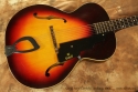 | Comments | The Guild company was formed in 1952 by Avram (Alfred) Dronge, a New York musician and music store owner and George Mann, a former Epiphone executive. Many of the early craftsmen were also from Epiphone, who didn’t want to move from Manhattan with the rest of Epiphone. During the 1950’s, much of Guild’s production was based around archtops, but with the rise of the folk movement, flat-top acoustics started to take over the line and gain an impressive reputation. However, Guild still built archtops, and do to this day. This is a 1966 Guild A50 Cordoba Archtop. When the A-50 was introduced in 1956, it was named the ‘Granada’ but in 1961 was renamed the ‘Cordoba’. This instrument has a double stamped serial number EA 235, which would be an X50 — the same guitar but with a pickup. So, at the factory, the guitar was originally slated to have a pickup, but for whatever reason it was re-numbered as an A50 and left acoustic. The guitar is in good playing condition, and the finish is quite good, but there is some finish pebbling towards the lower bout, as if the cable for something like a deArmond sliding pickup was taped in place. |