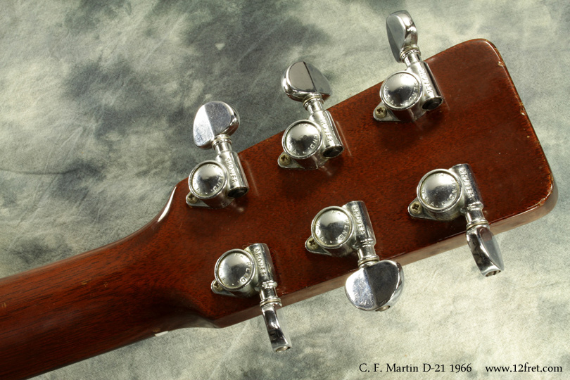 This 1966 Martin D-21 was built just before Martin stopped using Brazilian rosewood in response to Brazil’s restrictions on the export of Brazilian Rosewood in lumber form. This, then, is one of the last Brazilian D-21s. This example of the D-21 line is in good physical shape and good playing condition, and sounds quite good. |