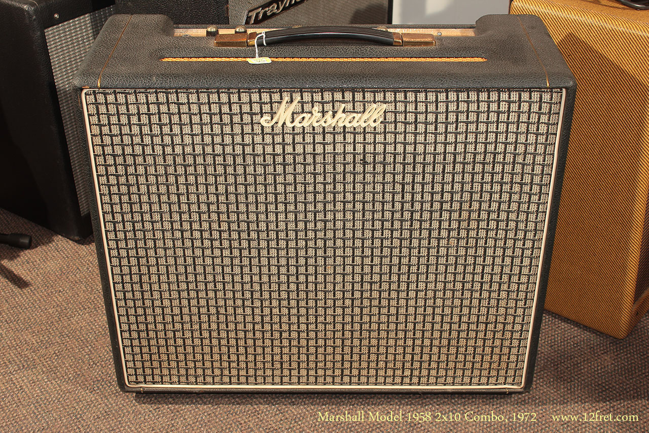 A lower output combo Model 1958 was built between 1968 and 1972, pushing 18 or 20 watts. This 1972 Marshall Model 1958 2×10 Combo features four inputs on two channels; channel 2 has a vibrato circuit.