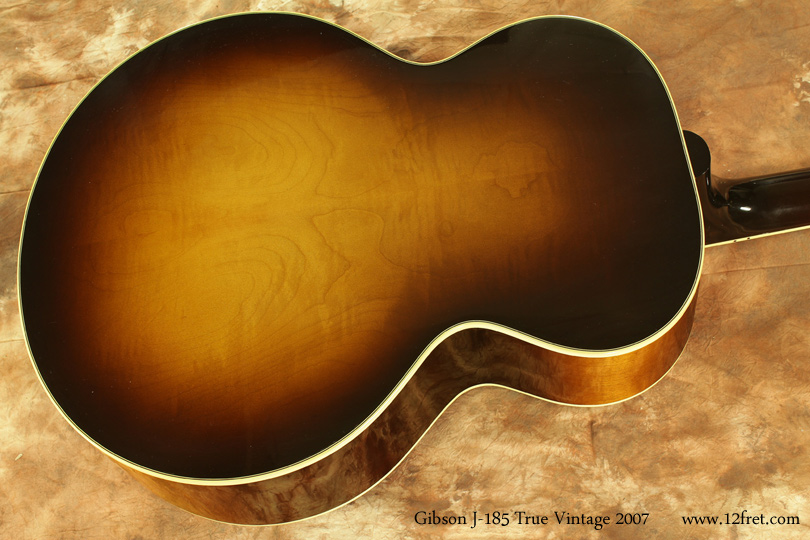 The J-185 was originally built in 1951, with a body just a bit smaller than the Super Jumbos, particularly the J-200. It’s a very comfortable body size, and the tonal results are more balanced than the larger guitars. This 2007 Gibson J-185 True Vintage has a very rich, full, balanced tone with lots of volume and projection and is a very, very good sounding instrument. |