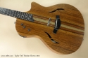 | Body | Taylor Thinline body, built from an Ovankol top on a Sapele chambered back/side unit. The top is not completely flat, but is braced with a compound radius. F-type holes. |