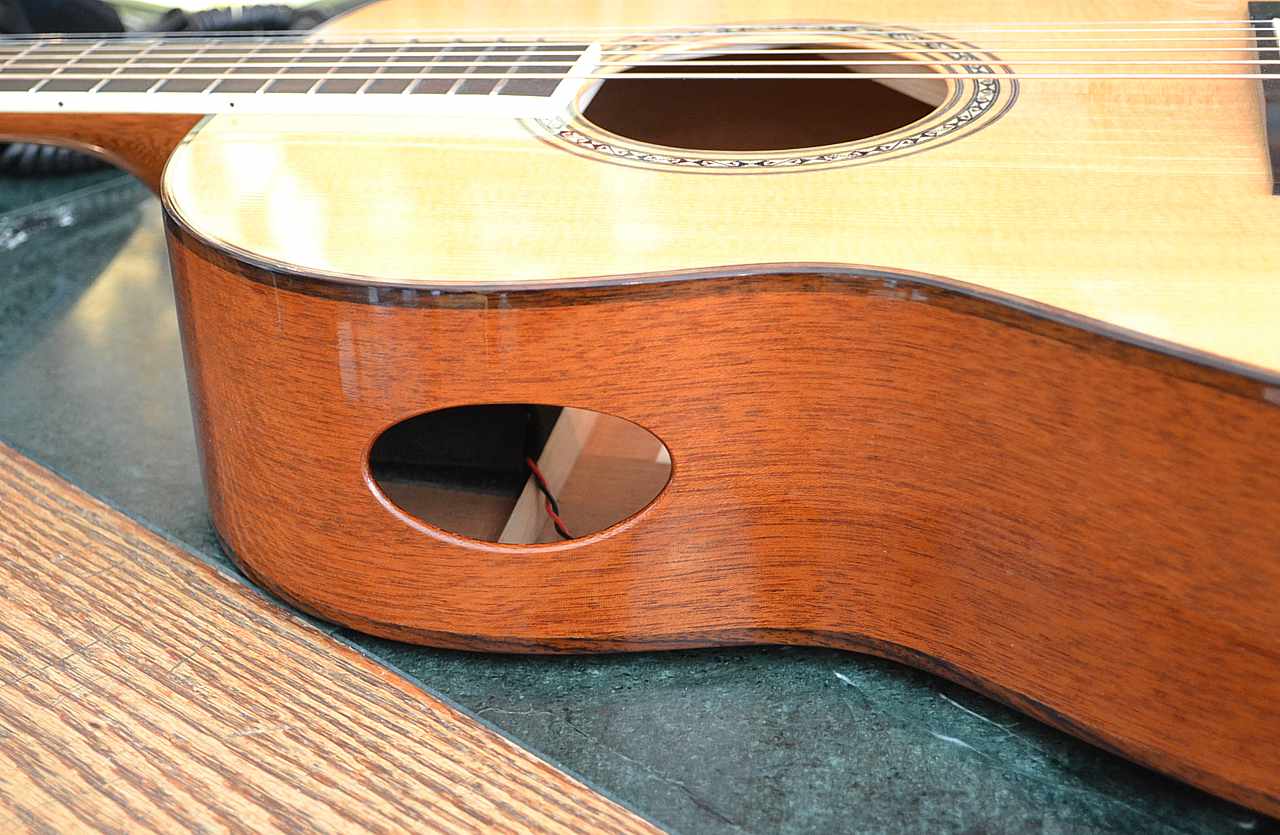 | Body | Sitka spruce top, mahogany sides and back, added side port. |