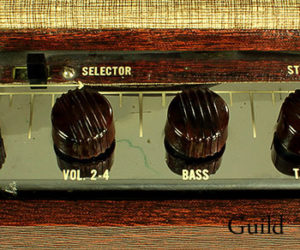 MORE →Here’s a very cool and rare mid-50’s Guild Masteramp 60. Guild wasn’t known as much for amps as Fender or Gibson were, but made a lot of great units. This example is in good condition though the trem is not working. The Masteramp line included the 60 with a 12″ speaker, and the 110 with a 15″ speaker.