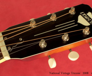 Here’s a find – a National Triolian Tricone, 12-fret neck, from 2010 in excellent condition. The Triolian was historically always a 12-frret model, but National now makes it in 14-fret (and baritone!) models too.